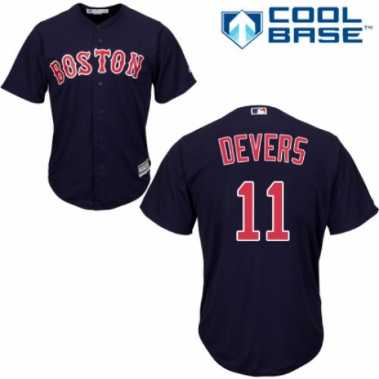 >Youth Majestic Boston Red Sox #11 Rafael Devers Authentic Navy Blue Alternate Road Cool Base MLB Jersey