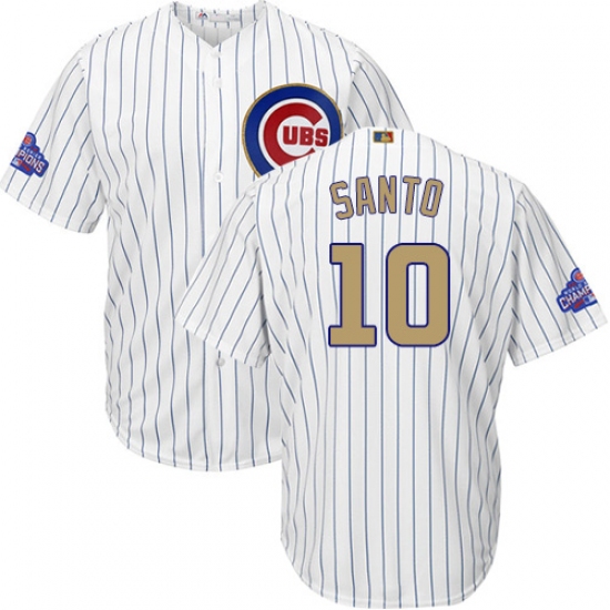 Home>MLB>Chicago Cubs>Ron Santo>Youth Majestic Chicago Cubs #10 Ron Santo Authentic White 2017 Gold Program Cool Base MLB Jersey