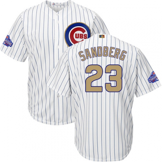 Home>MLB>Chicago Cubs>Ryne Sandberg>Youth Majestic Chicago Cubs #23 Ryne Sandberg Authentic White 2017 Gold Program Cool Base MLB Jersey