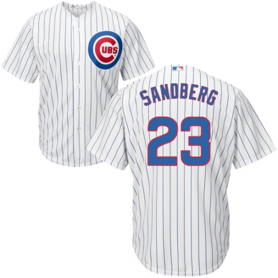 Home>MLB>Chicago Cubs>Ryne Sandberg>Youth Majestic Chicago Cubs #23 Ryne Sandberg Authentic White Home Cool Base MLB Jersey