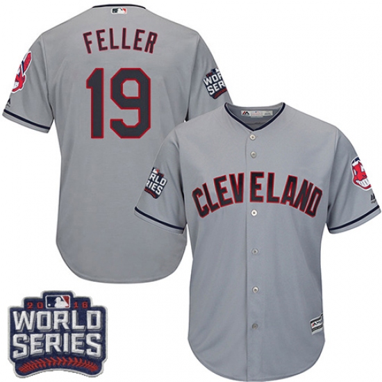Home>MLB>Cleveland Indians>Bob Feller>Youth Majestic Cleveland Indians #19 Bob Feller Authentic Grey Road 2016 World Series Bound Cool Base MLB Jersey