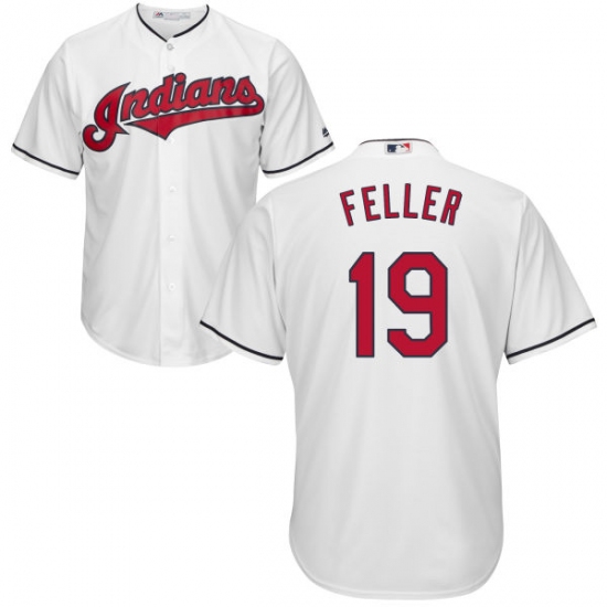 Home>MLB>Cleveland Indians>Bob Feller>Youth Majestic Cleveland Indians #19 Bob Feller Authentic White Home Cool Base MLB Jersey