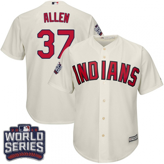 Home>MLB>Cleveland Indians>Cody Allen>Youth Majestic Cleveland Indians #37 Cody Allen Authentic Cream Alternate 2 2016 World Series Bound Cool Base MLB Jersey