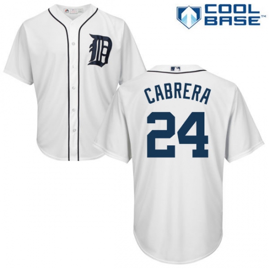 Home>MLB>Detroit Tigers>Miguel Cabrera>Youth Majestic Detroit Tigers #24 Miguel Cabrera Authentic White Home Cool Base MLB Jersey