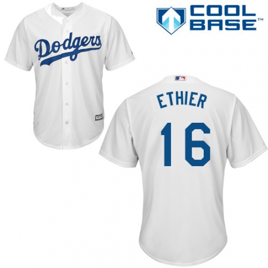 Youth Majestic Los Angeles Dodgers #16 Andre Ethier Replica White Home Cool Base MLB Jersey