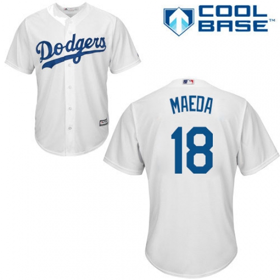 Home>MLB>Los Angeles Dodgers>Kenta Maeda>Youth Majestic Los Angeles Dodgers #18 Kenta Maeda Authentic White Home Cool Base MLB Jersey