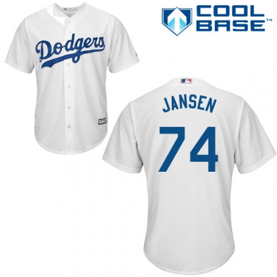 Home>MLB>Los Angeles Dodgers>Kenley Jansen>Youth Majestic Los Angeles Dodgers #74 Kenley Jansen Replica White Home Cool Base MLB Jersey
