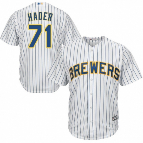 Youth Majestic Milwaukee Brewers #71 Josh Hader Authentic White Home Cool Base MLB Jersey