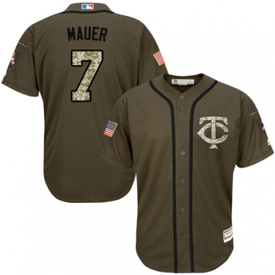 Home>MLB>Minnesota Twins>Joe Mauer>Youth Majestic Minnesota Twins #7 Joe Mauer Authentic Green Salute to Service MLB Jersey