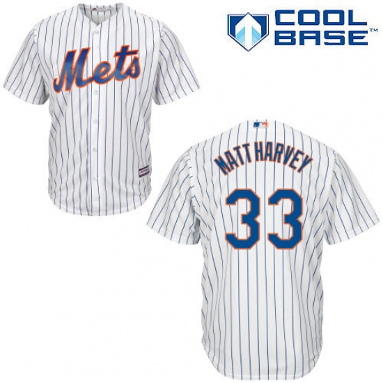 Home>MLB>New York Mets>Matt Harvey>Youth Majestic New York Mets #33 Matt Harvey Authentic White Home Cool Base MLB Jersey