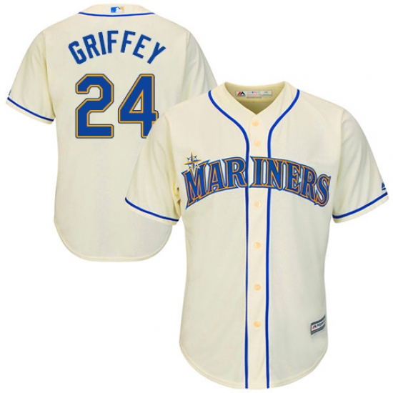 Home>MLB>Seattle Mariners>Ken Griffey>Youth Majestic Seattle Mariners #24 Ken Griffey Authentic Cream Alternate Cool Base MLB Jersey