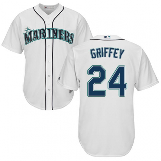Home>MLB>Seattle Mariners>Ken Griffey>Youth Majestic Seattle Mariners #24 Ken Griffey Authentic White Home Cool Base MLB Jersey