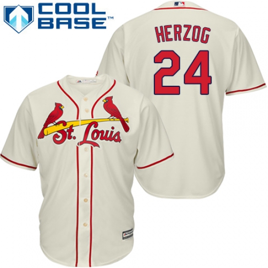 Home>MLB>St. Louis Cardinals>Whitey Herzog>Youth Majestic St. Louis Cardinals #24 Whitey Herzog Authentic Cream Alternate Cool Base MLB Jersey