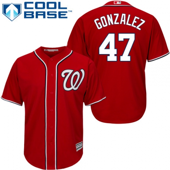 Home>MLB>Washington Nationals>Gio Gonzalez>Youth Majestic Washington Nationals #47 Gio Gonzalez Replica Red Alternate 1 Cool Base MLB Jersey