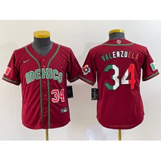 >Youth Mexico Baseball #34 Fernando Valenzuela 2023 Red World Classic Stitched Jersey 4