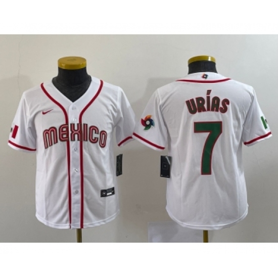 Men's Mexico Baseball #7 Julio Urias 2023 White World Baseball Classic Stitched Jersey