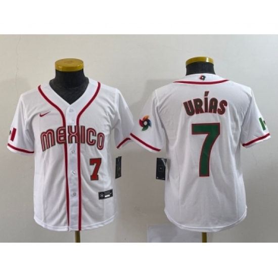 >Youth Mexico Baseball #7 Julio Urias Number 2023 Red World Baseball Classic Stitched Jersey 5