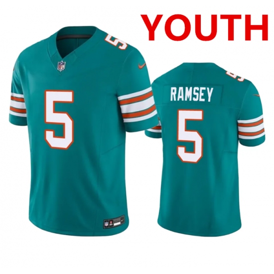 Youth Miami Dolphins #5 Jalen Ramsey Aqua 2023 F.U.S.E Vapor Limited Stitched Football Jersey