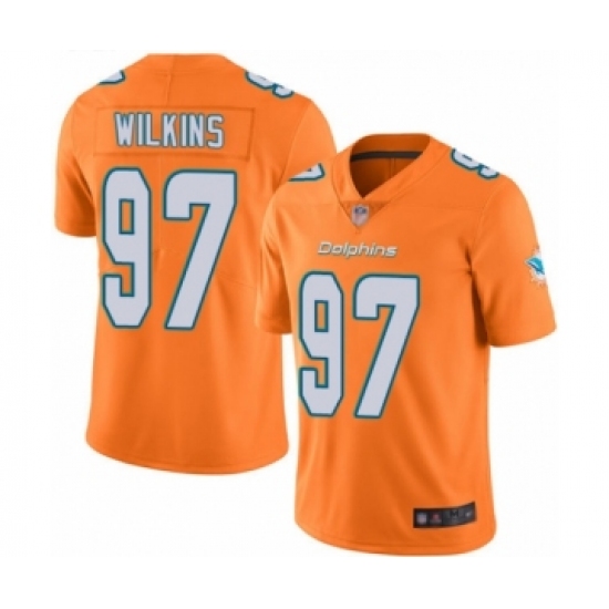 >Youth Miami Dolphins #97 Christian Wilkins Limited Orange Rush Vapor Untouchable Football Jersey