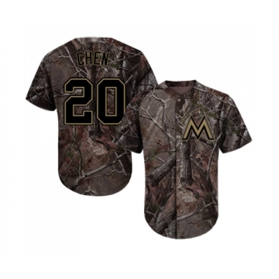 >Youth Miami Marlins #20 Wei-Yin Chen Authentic Camo Realtree Collection Flex Base Baseball Jersey