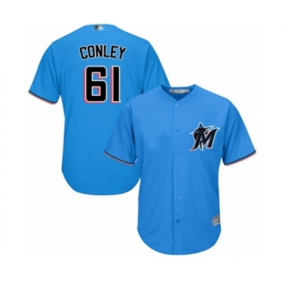 >Youth Miami Marlins #61 Adam Conley Authentic Blue Alternate 1 Cool Base Baseball Player Jersey