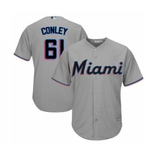 Youth Miami Marlins #61 Adam Conley Authentic Grey Road Cool Base Baseball Player Jersey