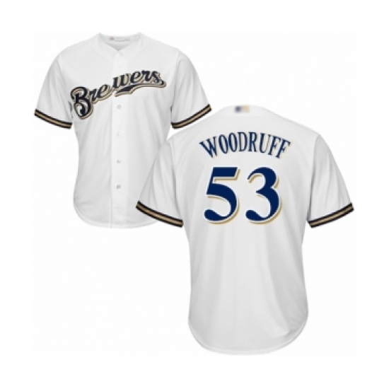 Men's Milwaukee Brewers #53 Brandon Woodruff Replica White Home Cool Base Baseball Jersey