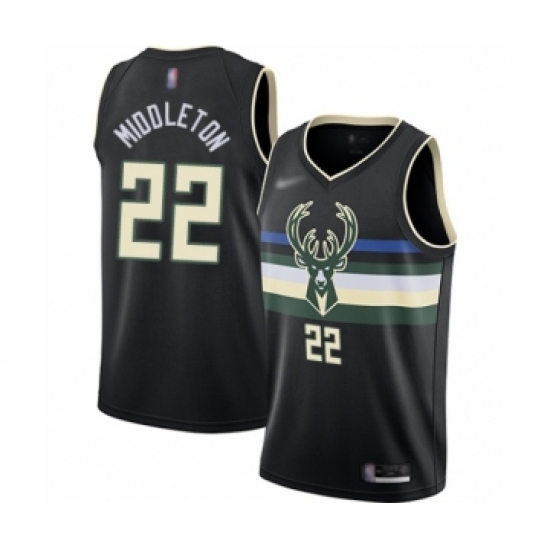 Men's Milwaukee Bucks #22 Khris Middleton Authentic Black Finished Basketball Jersey - Statement Edition