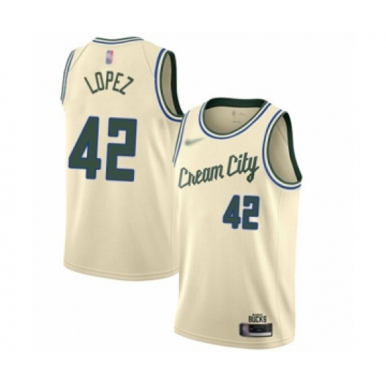 Youth Milwaukee Bucks #42 Robin Lopez Swingman Cream Basketball Jersey - 2019 20 City Edition