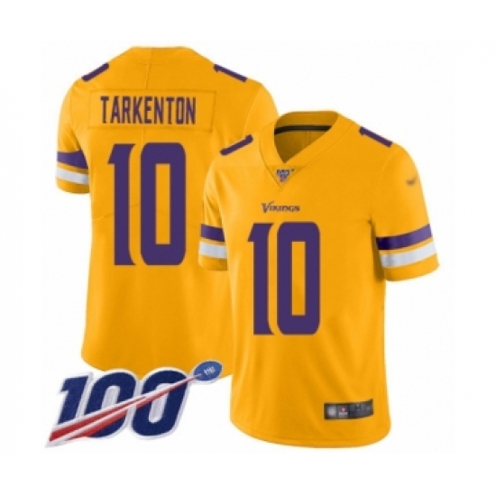 >Youth Minnesota Vikings #10 Fran Tarkenton Limited Gold Inverted Legend 100th Season Football Jersey