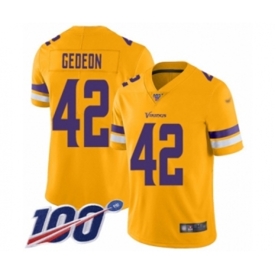 >Youth Minnesota Vikings #42 Ben Gedeon Limited Gold Inverted Legend 100th Season Football Jersey