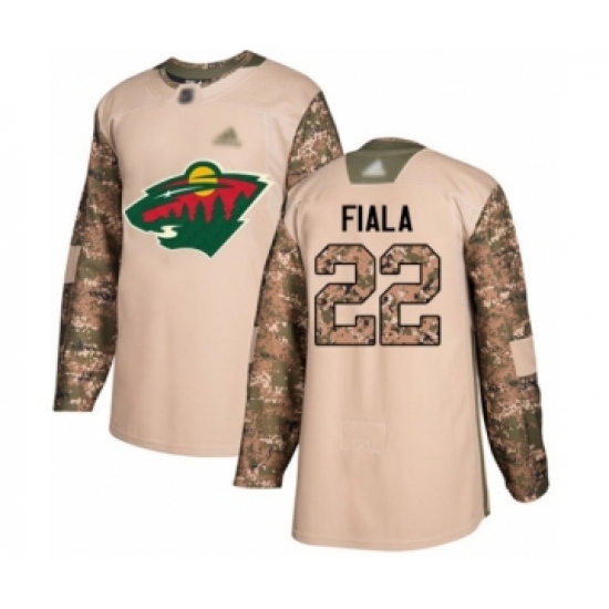 >Youth Minnesota Wild #22 Kevin Fiala Authentic Camo Veterans Day Practice Hockey Jersey