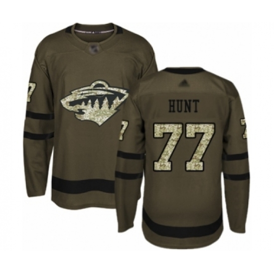 >Youth Minnesota Wild #77 Brad Hunt Authentic Green Salute to Service Hockey Jersey