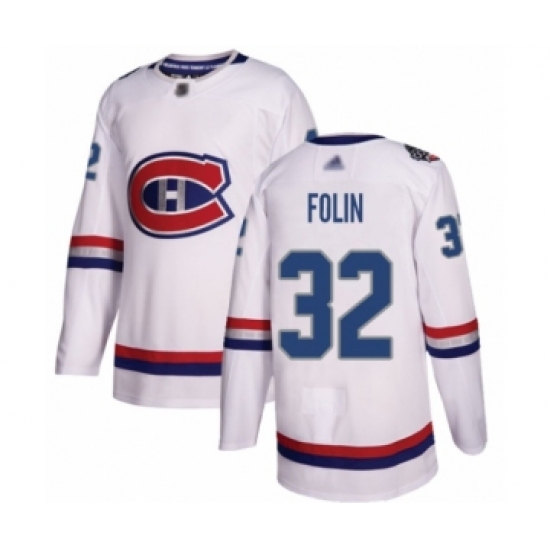 >Youth Montreal Canadiens #32 Christian Folin Authentic White 2017 100 Classic Hockey Jersey