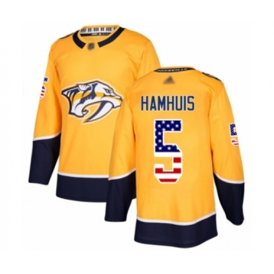 >Youth Nashville Predators #5 Dan Hamhuis Authentic Gold USA Flag Fashion Hockey Jersey
