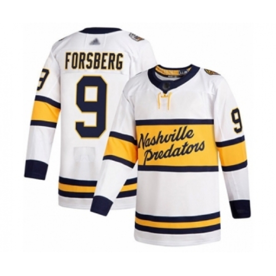 >Youth Nashville Predators #9 Filip Forsberg Authentic White 2020 Winter Classic Hockey Jersey