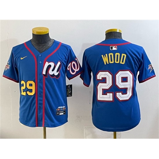 Youth National League #29 James Wood Blue 2025 All-Star Edition Limited Stitched Baseball Jersey