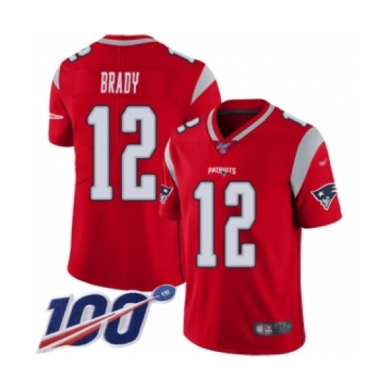 >Youth New England Patriots #12 Tom Brady Limited Red Inverted Legend 100th Season Football Jersey