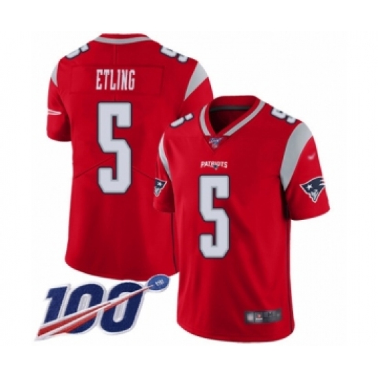 >Youth New England Patriots #5 Danny Etling Limited Red Inverted Legend 100th Season Football Jersey