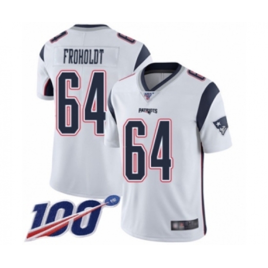 >Youth New England Patriots #64 Hjalte Froholdt White Vapor Untouchable Limited Player 100th Season Football Jersey