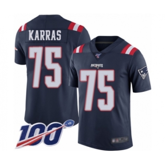 Youth New England Patriots #75 Ted Karras Limited Navy Blue Rush Vapor Untouchable 100th Season Football Jersey