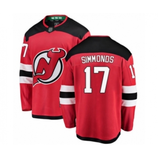 >Youth New Jersey Devils #17 Wayne Simmonds Fanatics Branded Red Home Breakaway Hockey Jersey