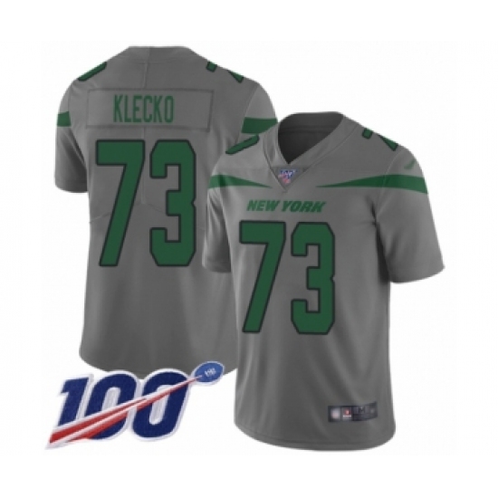 >Youth New York Jets #73 Joe Klecko Limited Gray Inverted Legend 100th Season Football Jersey