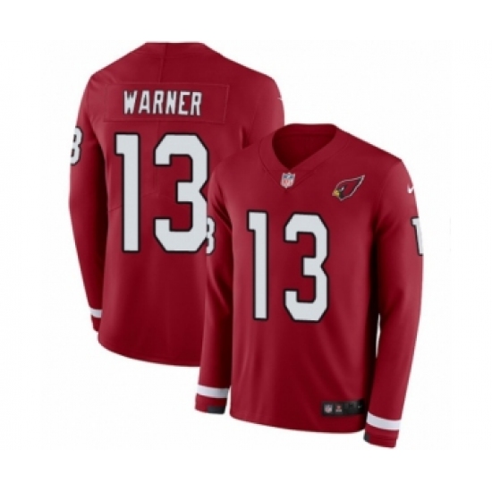 >Youth Nike Arizona Cardinals #13 Kurt Warner Limited Red Therma Long Sleeve NFL Jersey