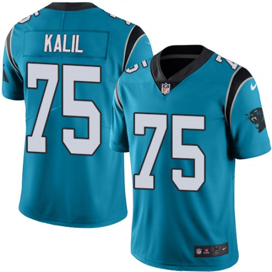 Youth Nike Carolina Panthers #75 Matt Kalil Limited Blue Rush Vapor Untouchable NFL Jersey