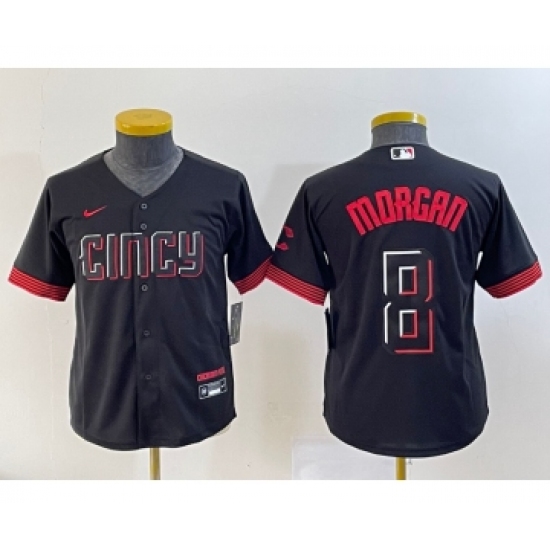 Youth Nike Cincinnati Reds #8 Joe Morgan Black 2023 City Connect Cool Base Stitched Jersey 1