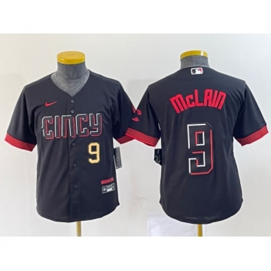 Youth Nike Cincinnati Reds #9 Matt McLain Number Black 2023 City Connect Cool Base Stitched Jersey1