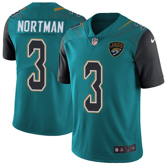 Home>NFL>Jacksonville Jaguars>Brad Nortman>Youth Nike Jacksonville Jaguars #3 Brad Nortman Teal Green Team Color Vapor Untouchable Limited Player NFL Jersey