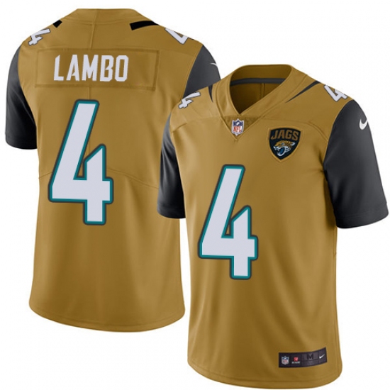Home>NFL>Jacksonville Jaguars>Josh Lambo>Youth Nike Jacksonville Jaguars #4 Josh Lambo Limited Gold Rush Vapor Untouchable NFL Jersey