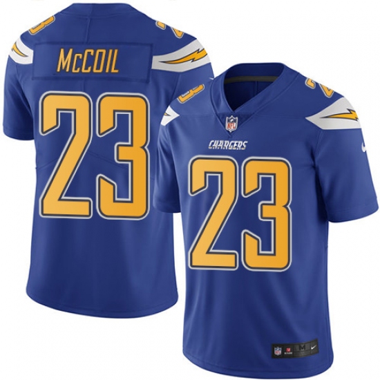Home>NFL>Los Angeles Chargers>Dexter McCoil>Youth Nike Los Angeles Chargers #23 Dexter McCoil Limited Electric Blue Rush Vapor Untouchable NFL Jersey